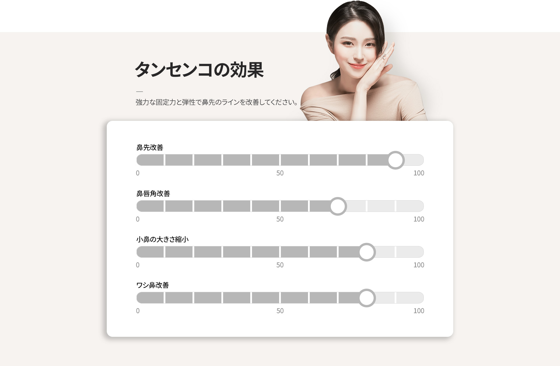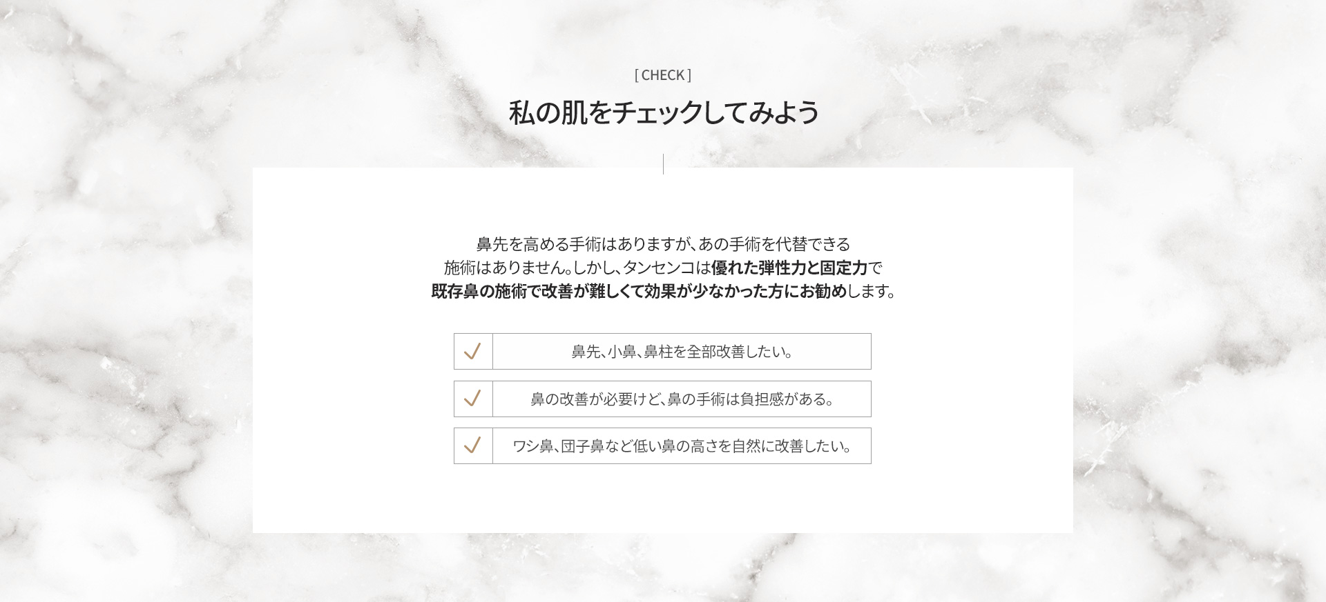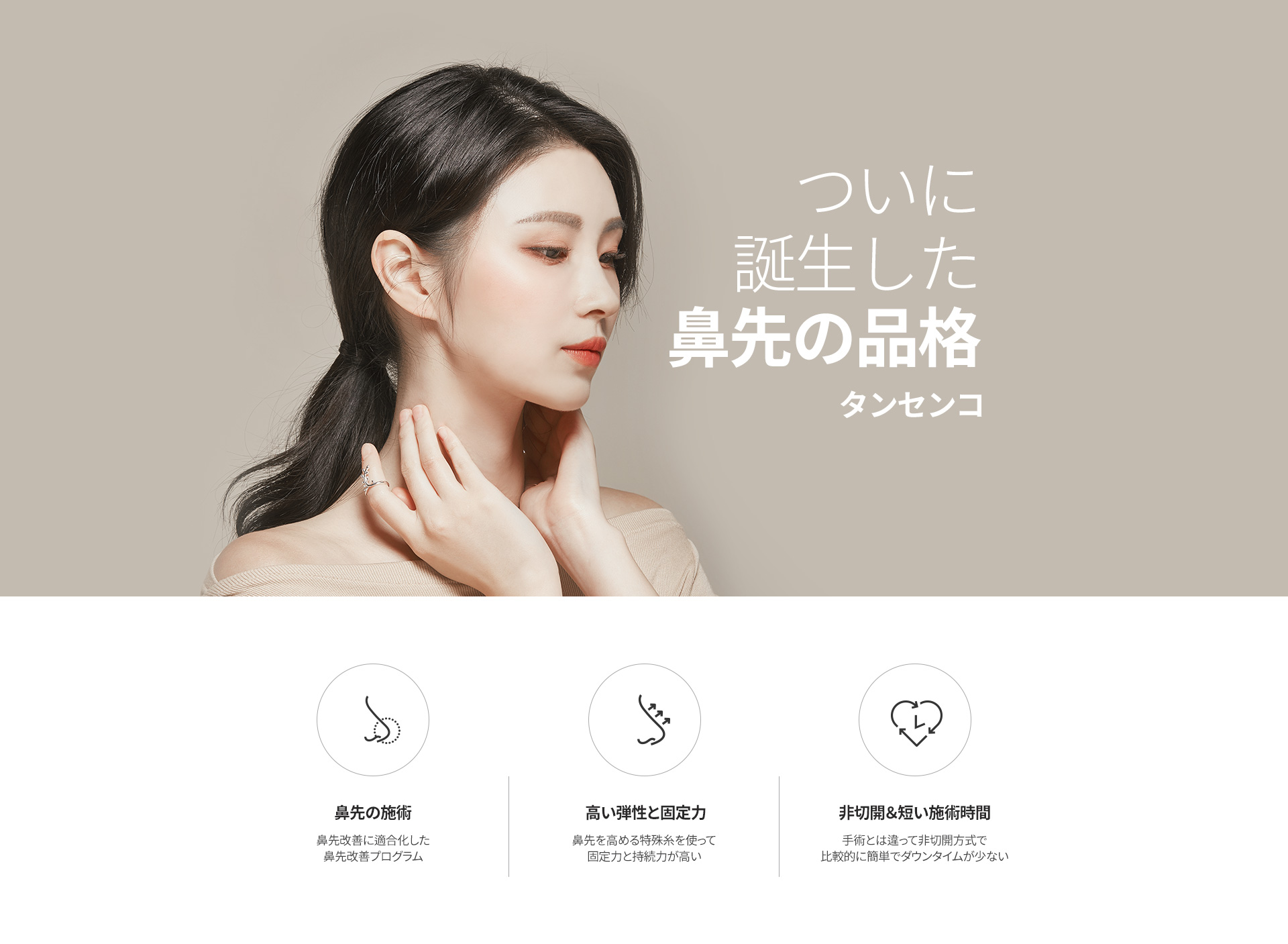タンセンコは、弾力性と支持力のある特殊な糸を使用し、鼻先の形を効果的に整える施術です。