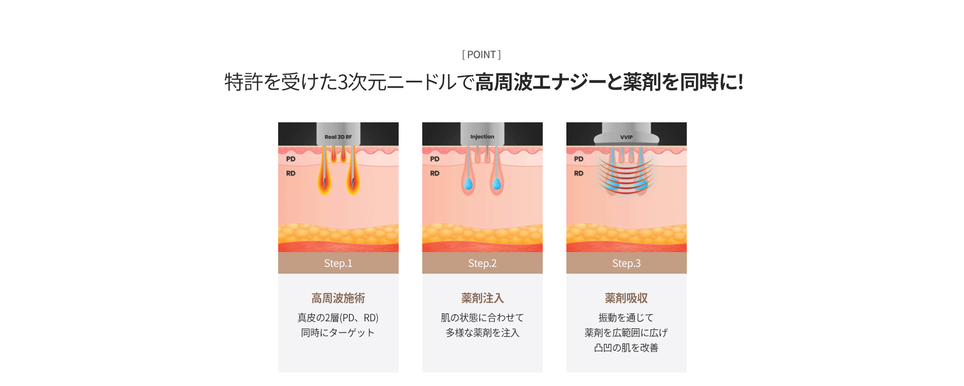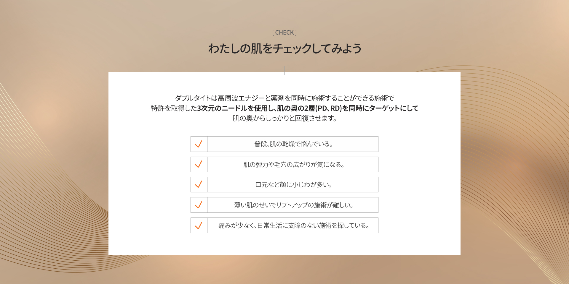 ダブルタイトは肌の内部にある二つの層(PD層、RD層)を同時にターゲットし、肌の奥からしっかりと回復させる施術です。